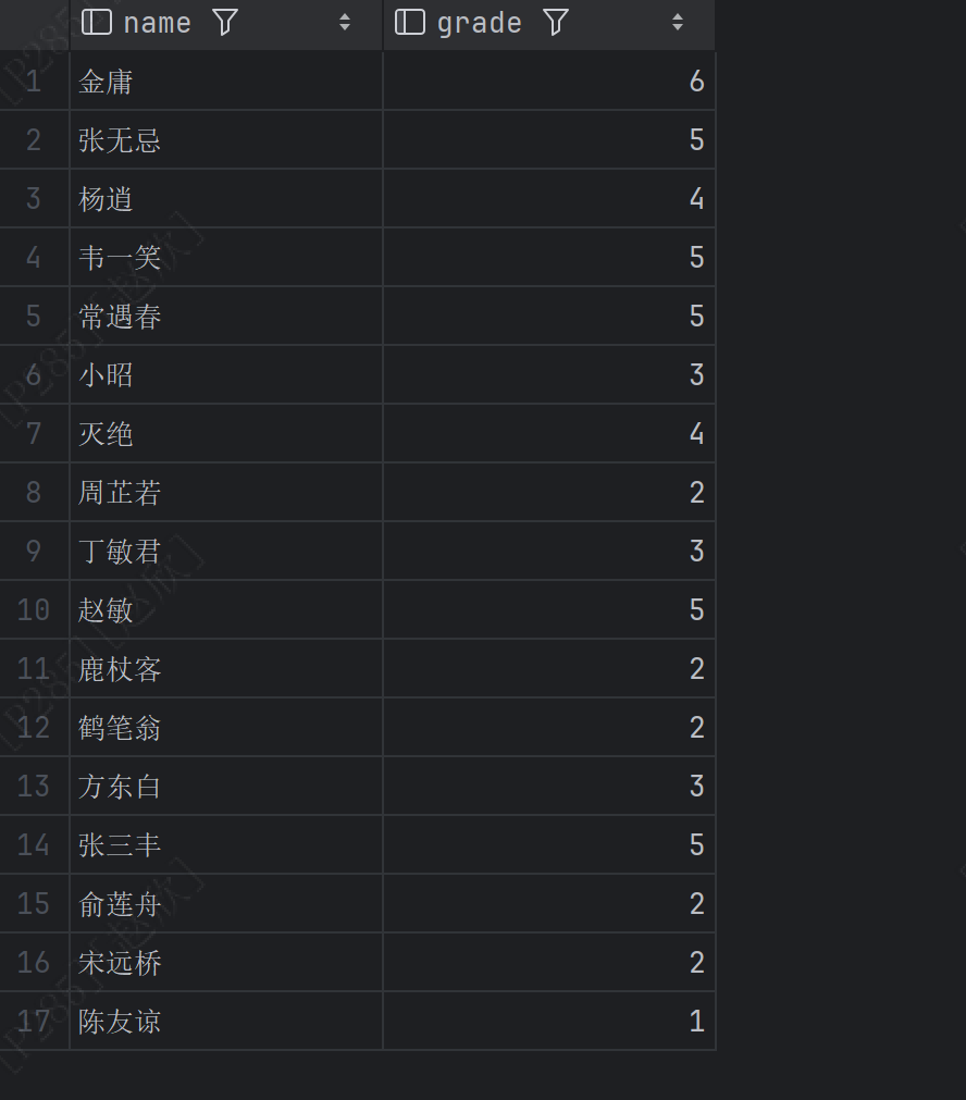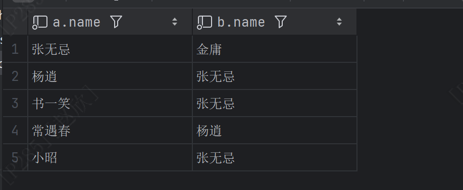 select * from find where (salary,managerid)=(select salary,managerid from find where name='张无忌');