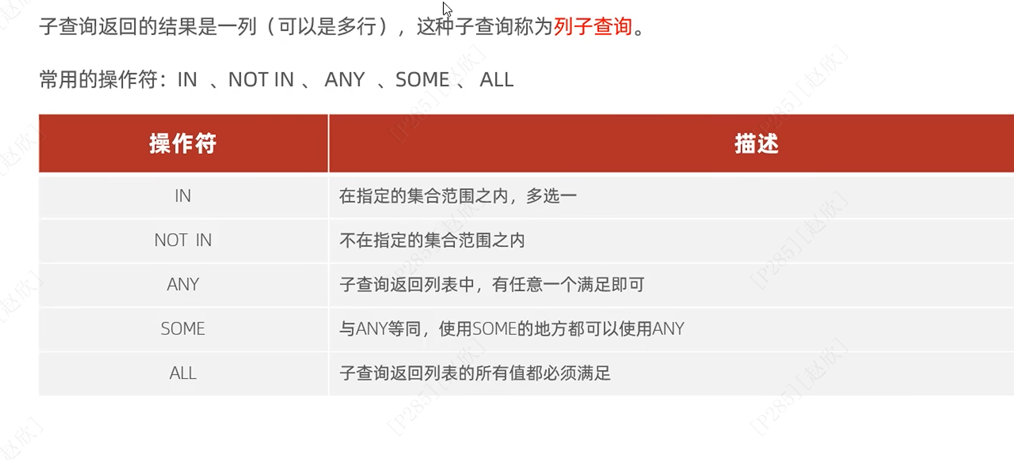 习题:(a)多行多列对应,在上述的基础上将等号变成in,代表只要有一个满足即可!!!