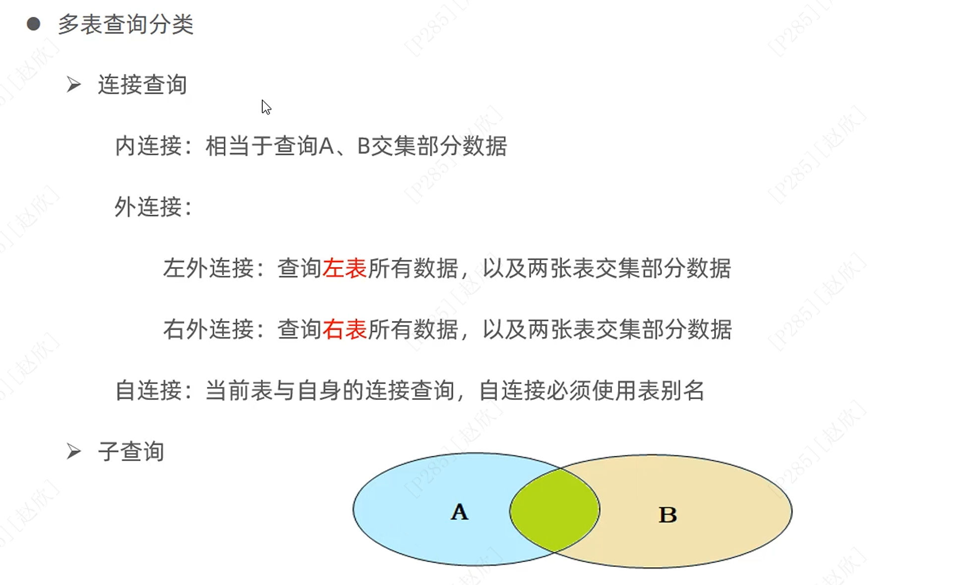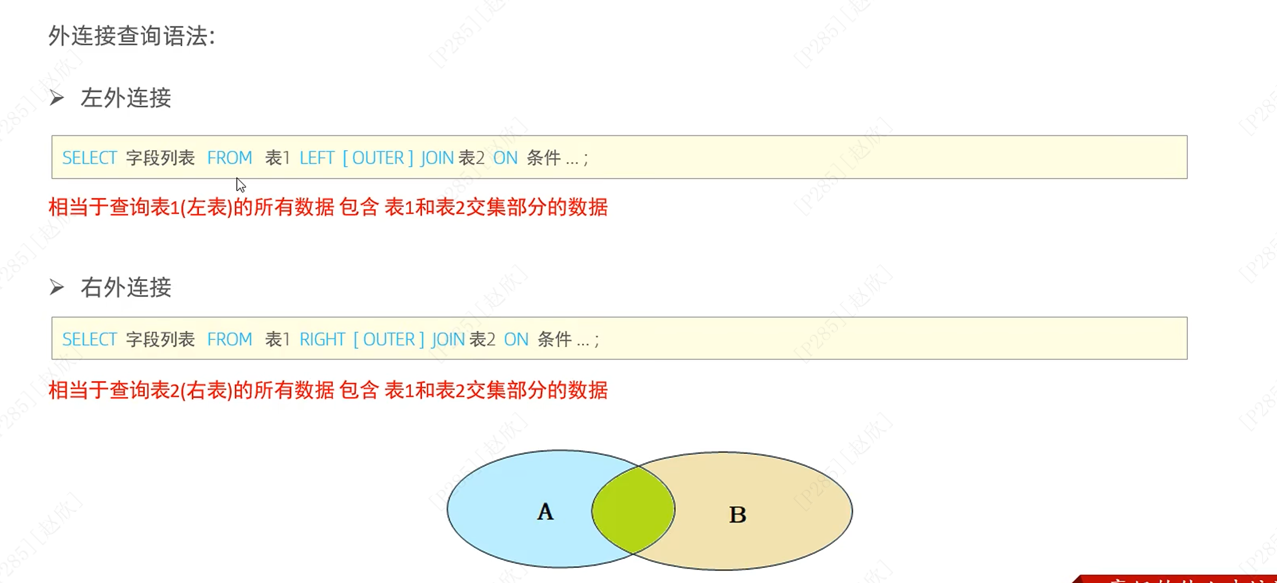 以左连接为例,将A和B连接之后,如果选择左连接,就返回A表和B表相连接之后的整个信息表,并且以A表的数据为主,B表如果没有A表相对应的内容就置为NULL