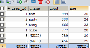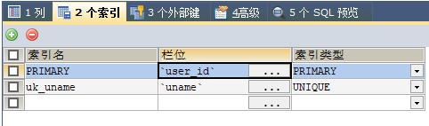 user_id是PRIMARY主键,不能为null,uname是UNIQUE可以为NULL但是不能重复
