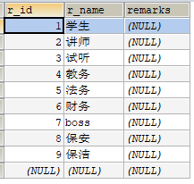 CREATE TABLE t_roles(r_id INT, r_name VARCHAR(20),remarks VARCHAR(50));