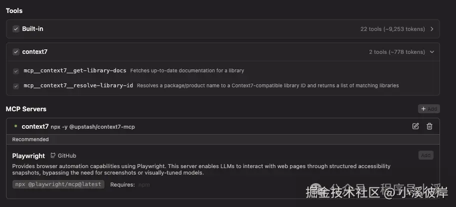 添加成功后可以在【Tools】查看MCP的可用工具,在【MCP Servers】可以对MCP进行管理