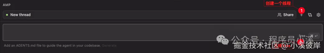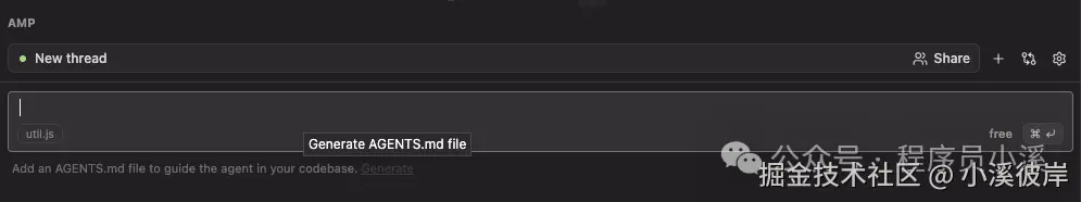 点击对话框底部的【Generate】,Amp Code扩展插件会在对话框中自动填充提示词生成 AGENTS.md 文件