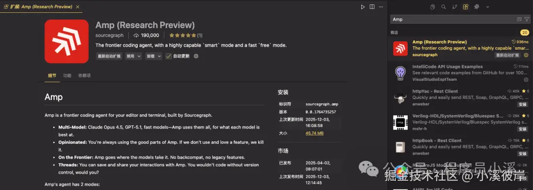 Amp Code提供了 扩展插件 和 Amp Code CLI 2种使用形式