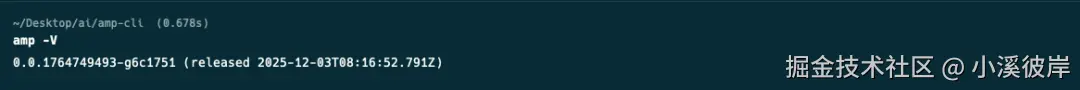 安装完成后,在命令行终端输入 amp -v 查看版本