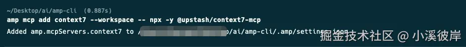$ amp mcp add context7 --workspace -- npx -y @upstash/context7-mcp