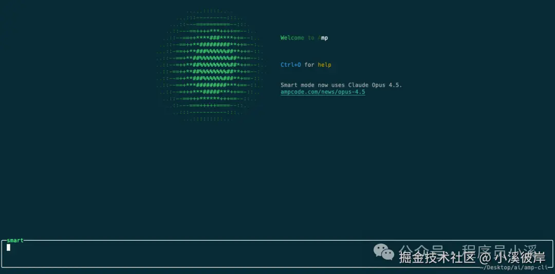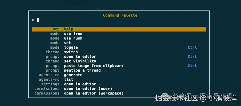 Amp Code CLI提供了 smart、rush 和 free 3 种对话模式,使用快捷键【Ctrl+S】快速切换