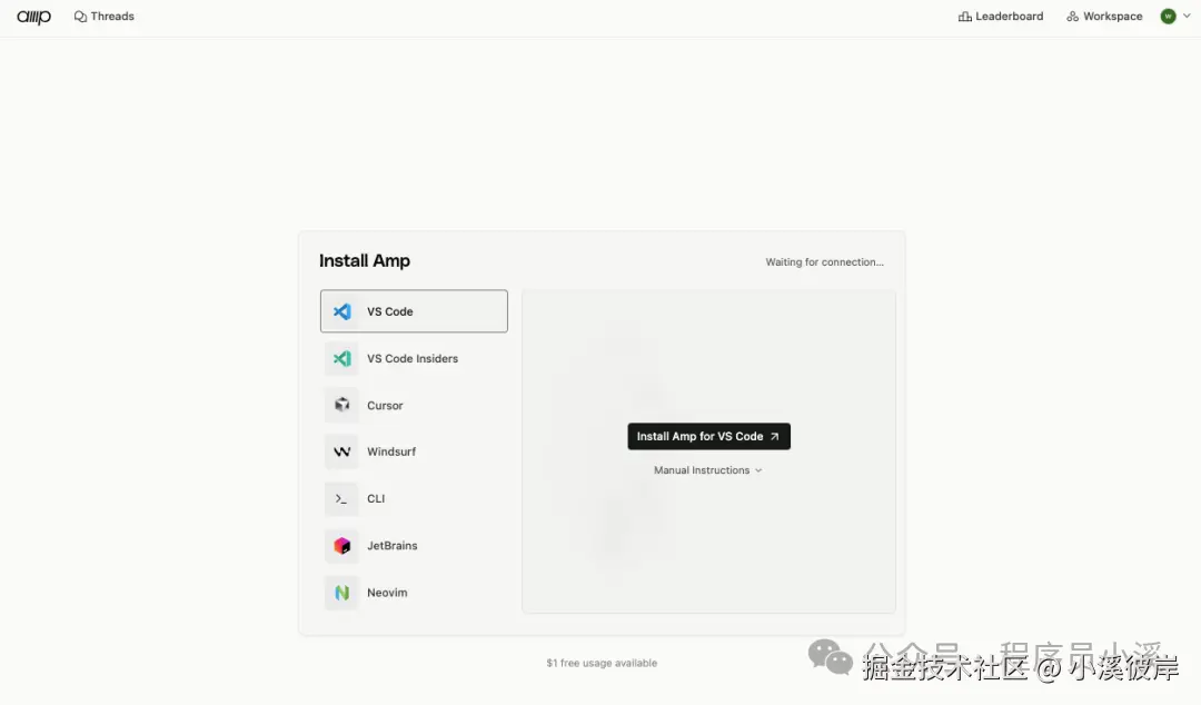 - Amp Code支持 macOS、Linux 和 Windows(推荐使用 WSL)