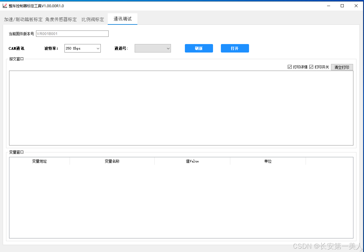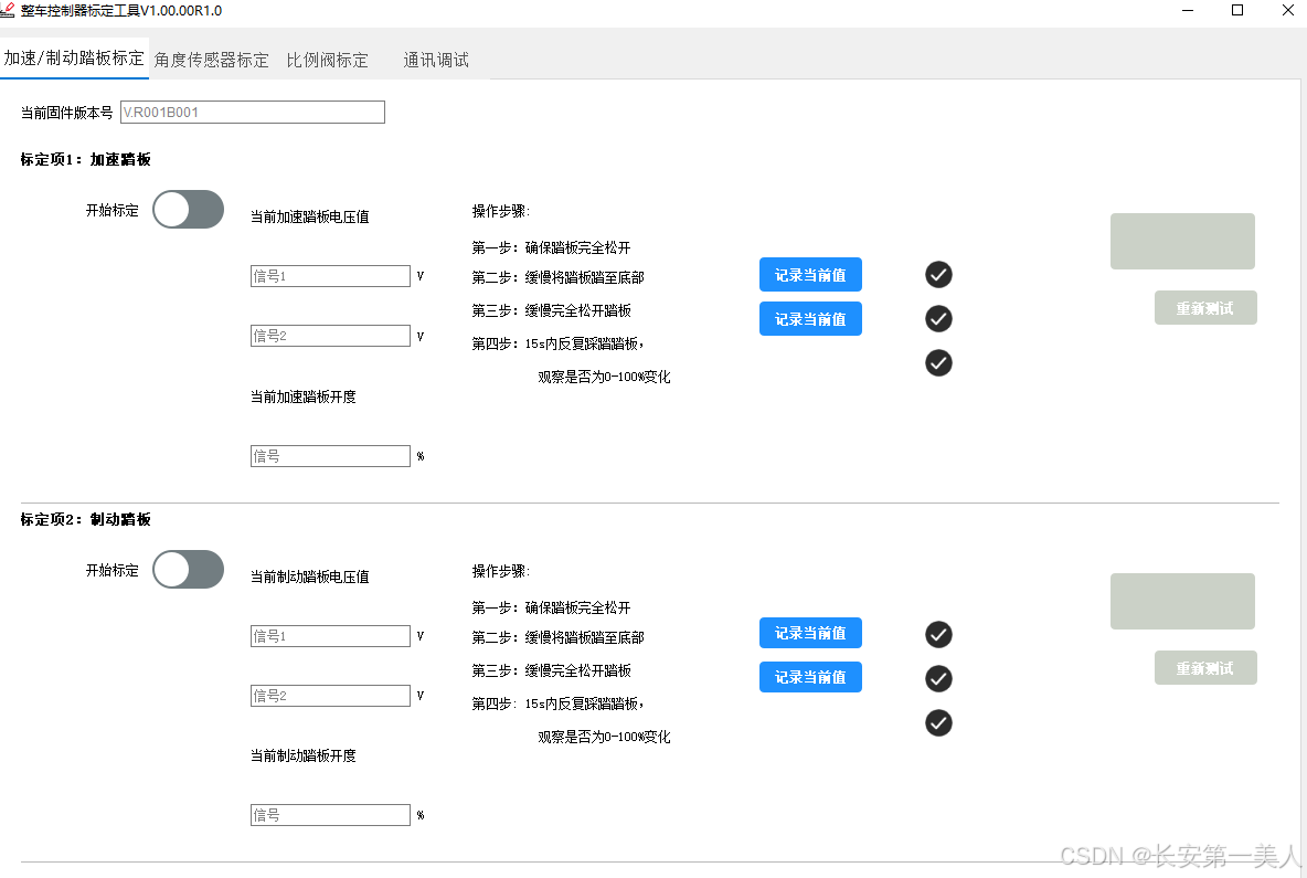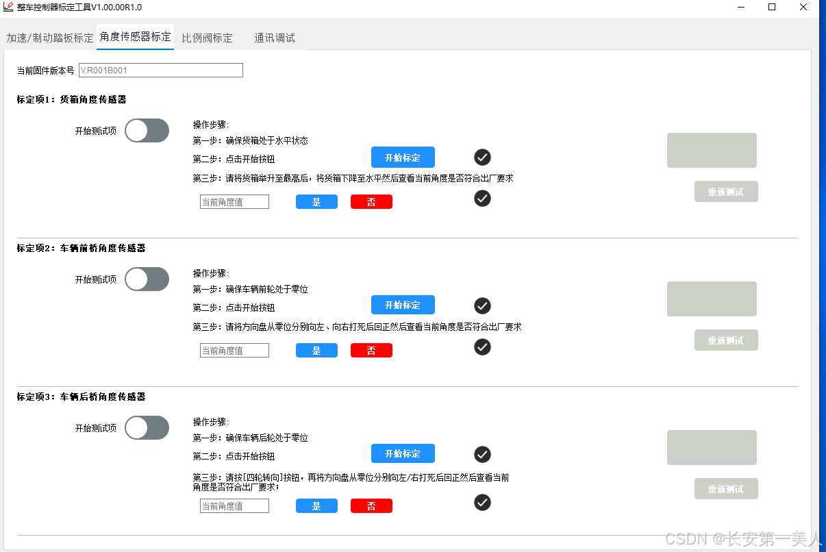 2.打开角度传感器的测试按钮,拔掉VCU点击开始标定按钮无响应