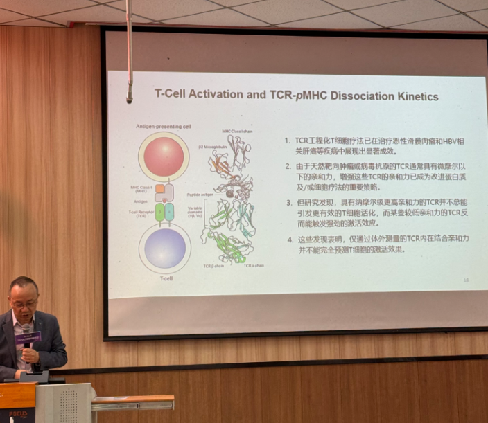 深圳理工大学张增辉带来的蛋白-蛋白相互作用及TCR-pMHC解离动力学对T细胞激化的关键影响,主要讨论了小分子药物筛选、TCR免疫治疗以及治疗性疫苗开发的最新研究进展。此外还分享了部分实验数据、计算模拟方法以及在抗结核和抗病毒领域的潜在应用。提出了一种能够有效抑制细胞生长的分子药物,并计划进一步开发为抗TB药物,但目前该分子已申请专利,未公开这部分的工作。感兴趣的同学可以参考https://doi.org/10.1002/pro.70346这篇文章