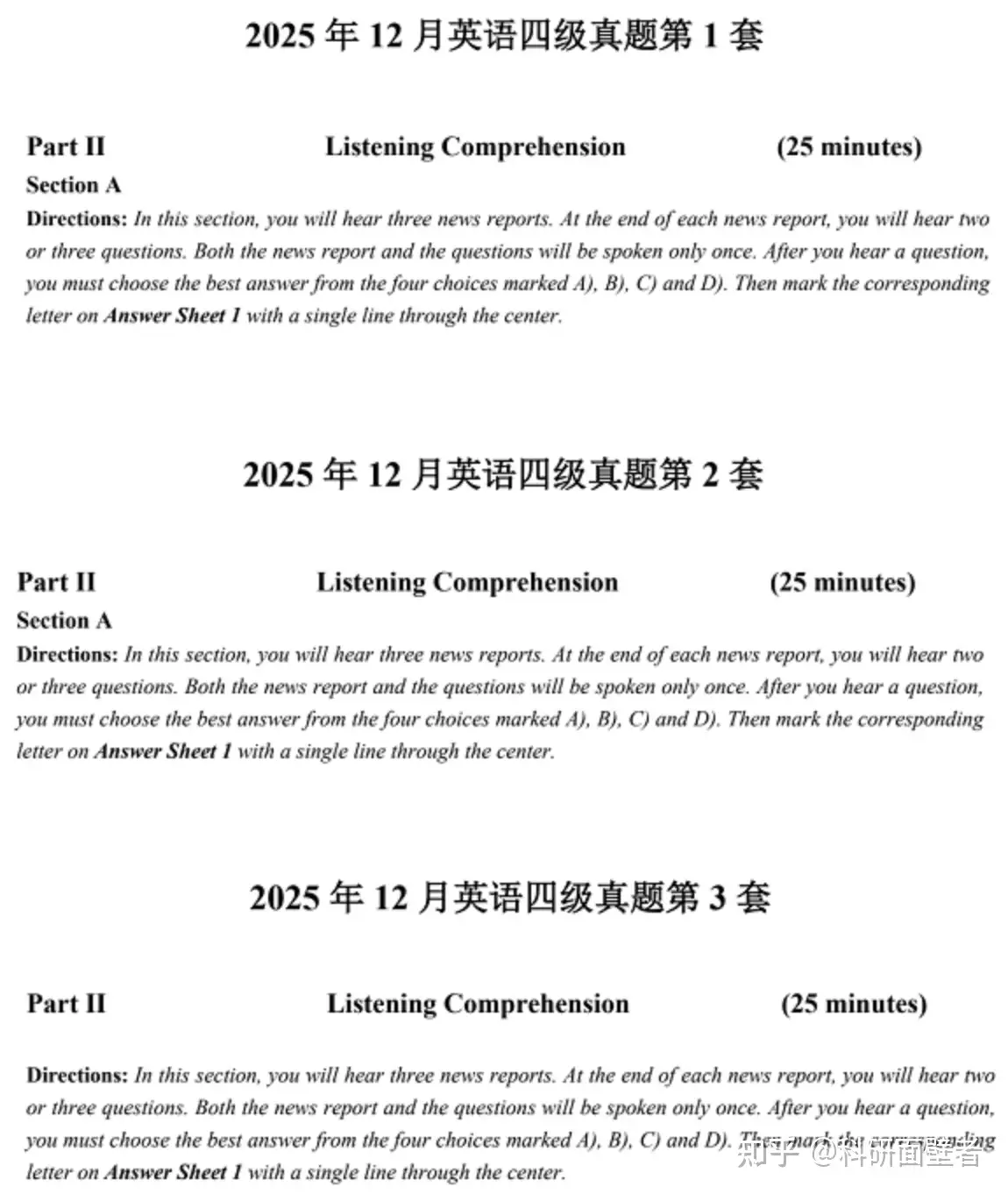 2025年12月英语46级真题试卷和答案(一、二、三套全)完整版下载地址【目前所有试卷的答案都已经更新完毕】: