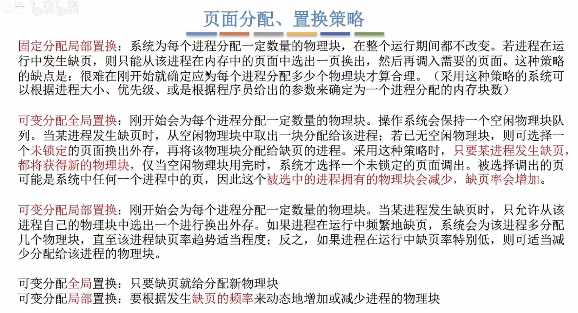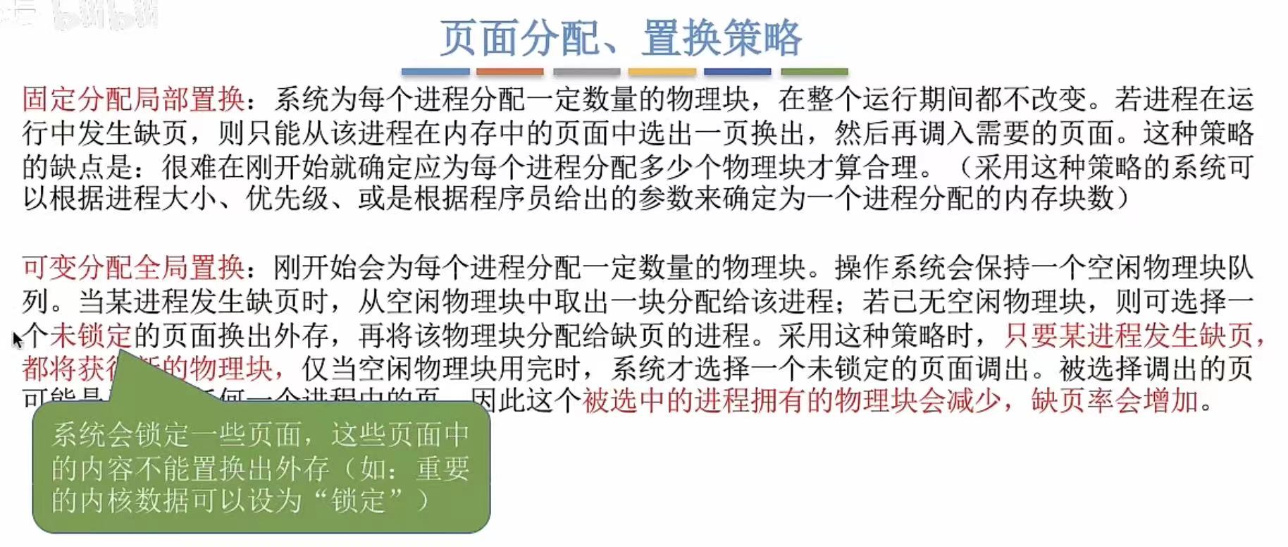 - 注意:固定分配只能用自己得到的,所以没有固定全局置换 之说