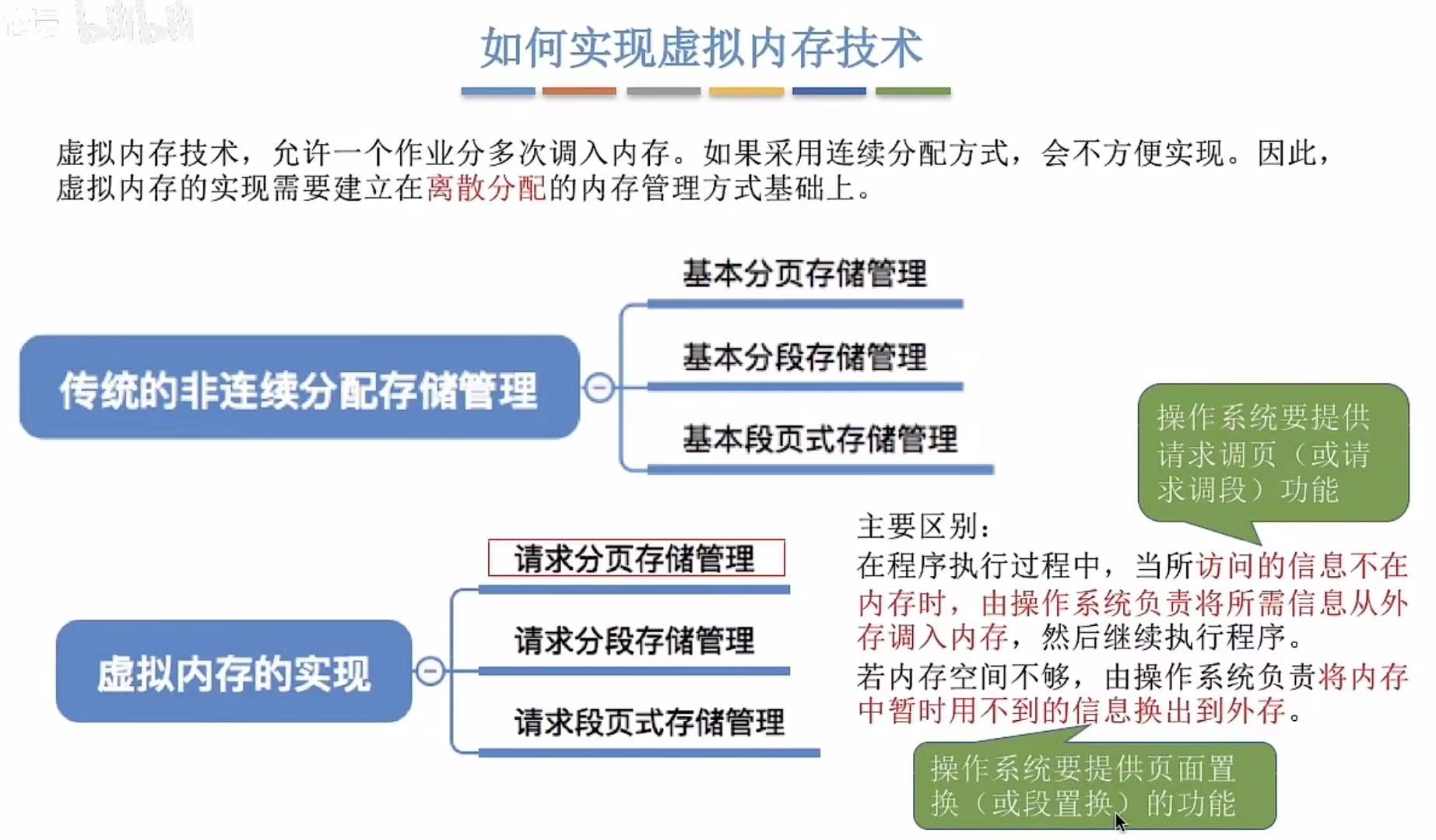 从名字对比上也可以看出来,操作系统需要提供请求调页 和页面置换 的功能。