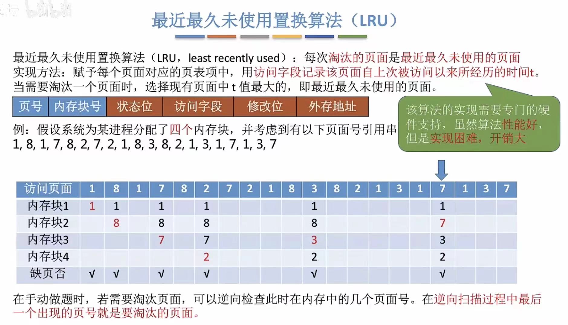 - 缺页中断:见红色数字,最开始没存入页表的就算缺页中断