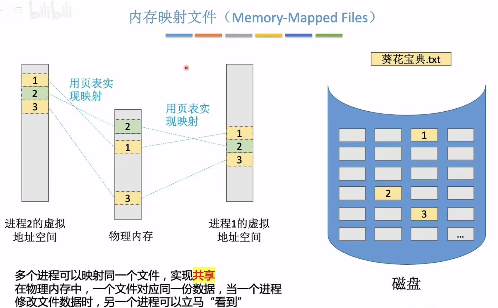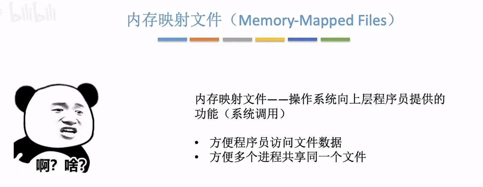 映射:将在内存中的文件映射到虚拟地址(只是映射,还没存入,所以会有缺页中断)