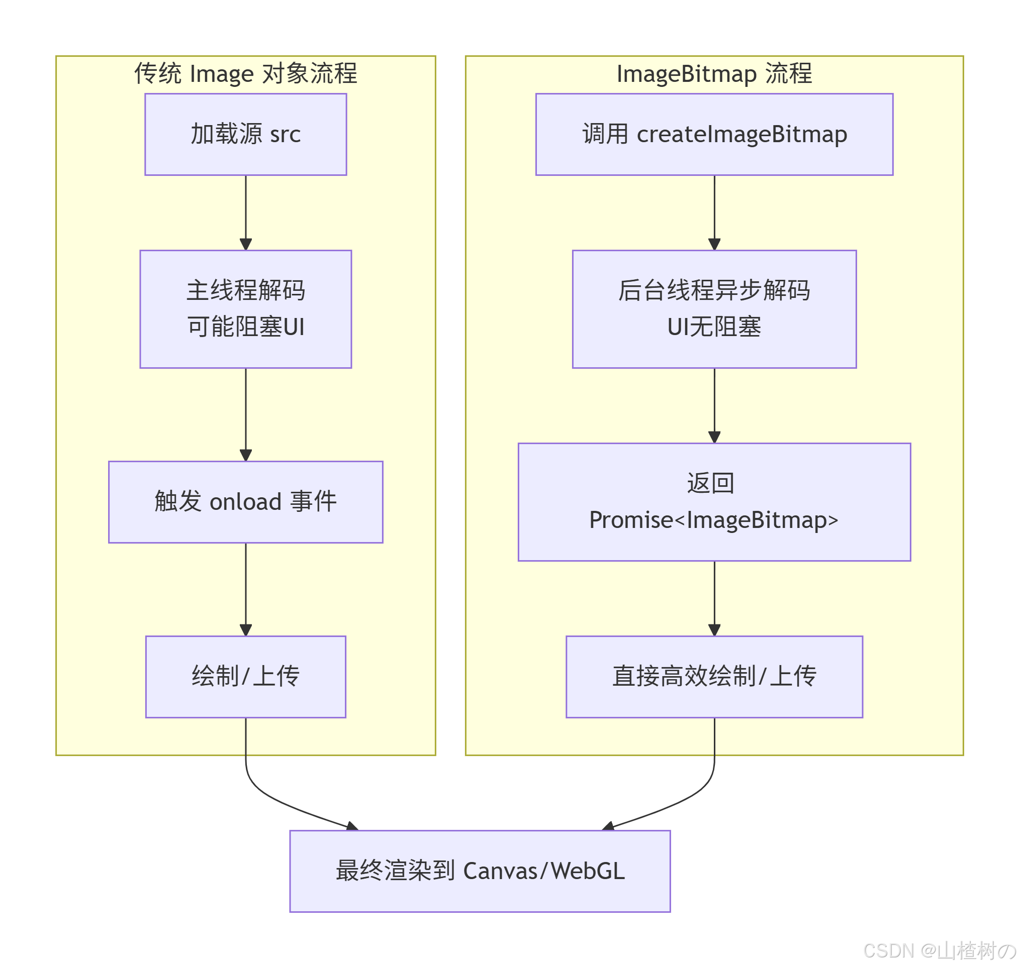 ImageBitmap 是 为性能而生的底层图形原语,当你需要高性能解码、渲染控制,或与 Canvas/WebGL/Worker 交互时,ImageBitmap 是不二之选