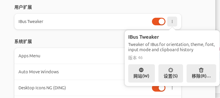 进入下面的网页,点击installhttps://extensions.gnome.org/extension/2820/ibus-tweaker/
