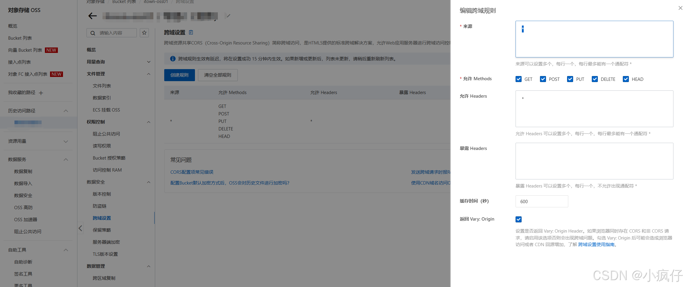 1.来源:指定允许的跨域请求的来源。允许多条匹配规则,以回车为间隔。每个匹配规则允许使用最多一个""通配符。