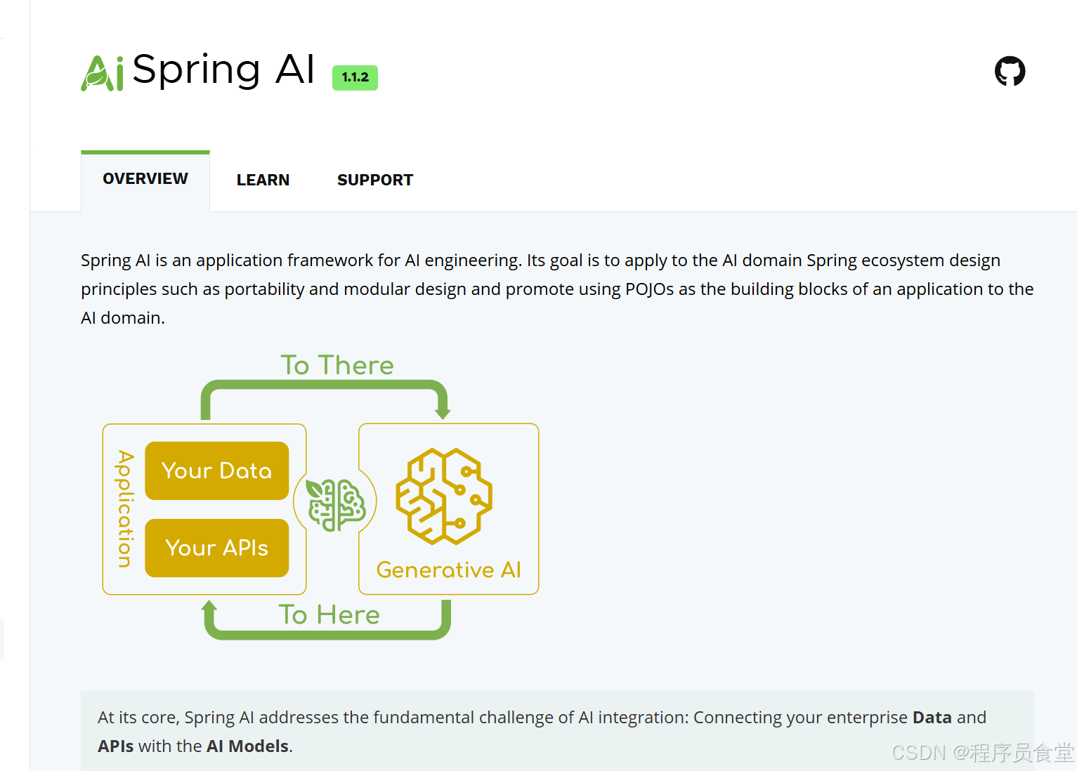 Spring AI 是一个用于 AI 工程的应用框架。 其目标是将 Spring 生态系统设计原则应用于 AI 领域,如可移植性和模块化设计,并推广将 POJO 作为应用构建模块到人工智能领域的应用。