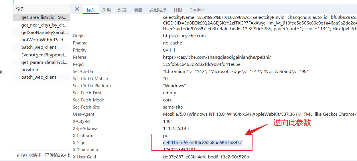 右边headers里面没有密文但是这里headers里就有了,这里就是加密位置,咱进函数找核心代码,进去之后发现了加密参数赋值的位置: