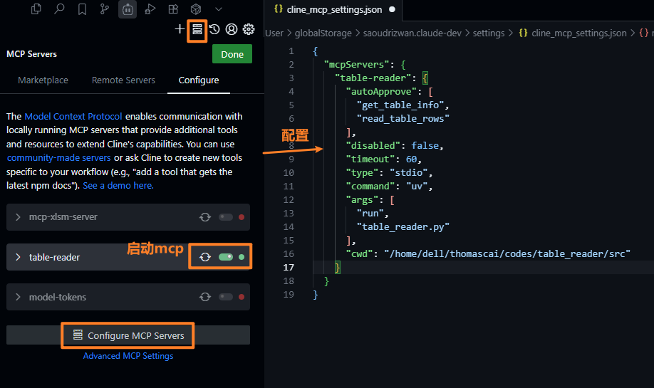 4.2 在 Cline 中配置 table-reader(server)