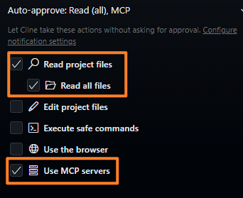 以及打开读取文件和使用mcp的权限: