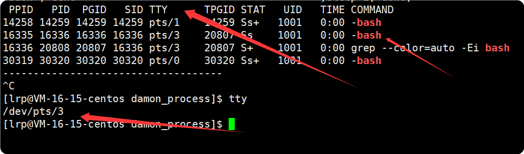 如上 command表示你执行的bash命令 通常是执行可执行程序的名字,看 我们 当前的会话的终端设备 3 但是它的会话sid: 16336,以及 我们还看到前台会话的: 如sid: 30320的bash进程 : 它的baash进程的pid跟我们的会话bash 进程的pid就不一样 ,进制组也不一样