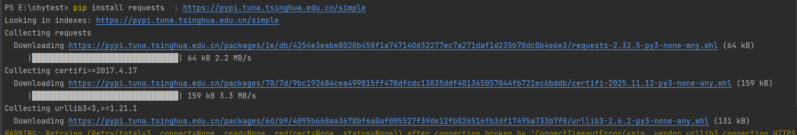 pip install requests -i https://pypi.tuna.tsinghua.edu.cn/simple