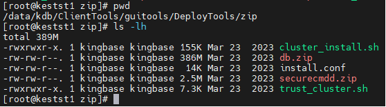 root@kestst1 zip\]# cp securecmdd.zip /home/kingbase/cluster/ \[root@kestst1 zip\]# cd /home/kingbase/cluster/ \[root@kestst1 cluster\]# unzip securecmdd.zip Archive: securecmdd.zip creating: securecmdd/ creating: securecmdd/lib/ inflating: securecmdd/lib/libcrypto.so.1.1 inflating: securecmdd/lib/libssl.so.1.1 creating: securecmdd/bin/ inflating: securecmdd/bin/sys_securecmd inflating: securecmdd/bin/sys_secureftp inflating: securecmdd/bin/sys_HAscmdd.sh inflating: securecmdd/bin/sys_securecmdd creating: securecmdd/share/ inflating: securecmdd/share/sys_HAscmdd.conf inflating: securecmdd/share/key_file inflating: securecmdd/share/securecmdd_config inflating: securecmdd/share/securecmdd.service inflating: securecmdd/share/securecmd_config inflating: securecmdd/share/accept_hosts \[root@kestst1 cluster\]# cd securecmdd/share/ \[root@kestst1 share\]# ls -lh total 24K -rw-------. 1 root root 381 Mar 23 2023 accept_hosts -rw-------. 1 root root 1.7K Mar 23 2023 key_file -rw-------. 1 root root 376 Mar 23 2023 securecmd_config -rw-------. 1 root root 647 Mar 23 2023 securecmdd_config -rw-r--r--. 1 root root 275 Mar 23 2023 securecmdd.service -rw-r--r--. 1 root root 310 Mar 23 2023 sys_HAscmdd.conf \[root@kestst1 share\]#  ###执行初始化 \[root@kestst1 bin\]# sh sys_HAscmdd.sh init successfully initialized the sys_securecmdd, please use "sys_HAscmdd.sh start" to start the sys_securecmdd ###查看生成的文件: \[root@kestst1 bin\]# ls -lh /etc/systemd/system/securecmdd.service -rw-r--r--. 1 root root 312 Jan 16 16:54 /etc/systemd/system/securecmdd.service ###查看内容: \[root@kestst1 bin\]# cat /etc/systemd/system/securecmdd.service \[Unit