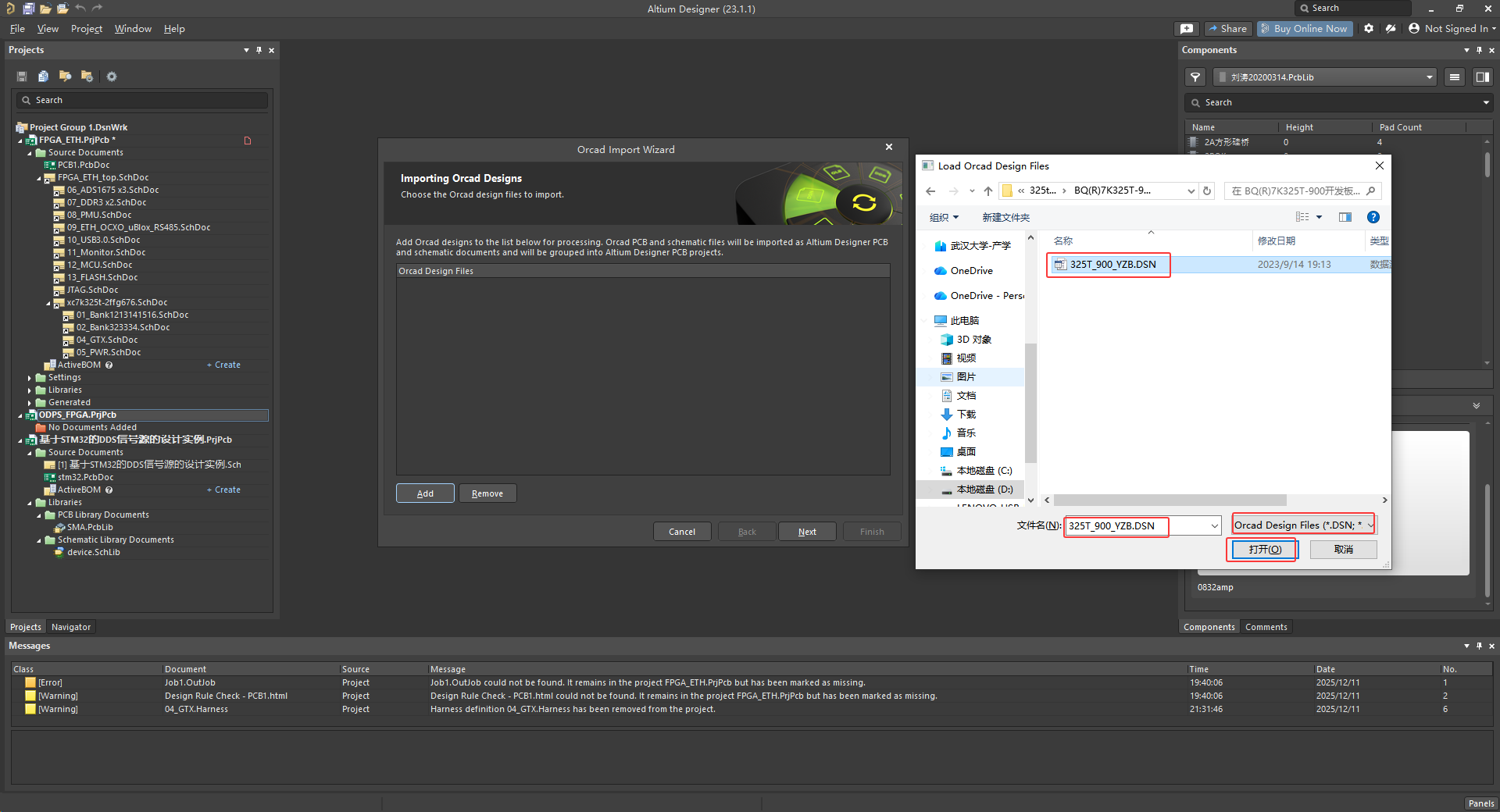 在文件类型下拉框中,选择 OrCAD Design Files (*.dsn)。找到并选中你的 .dsn 文件。