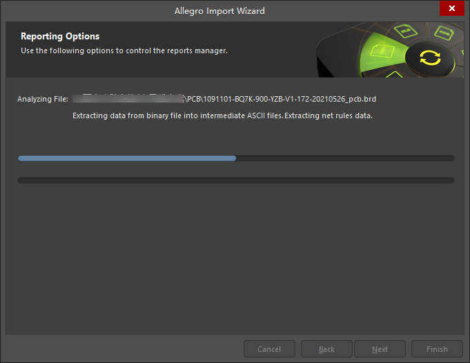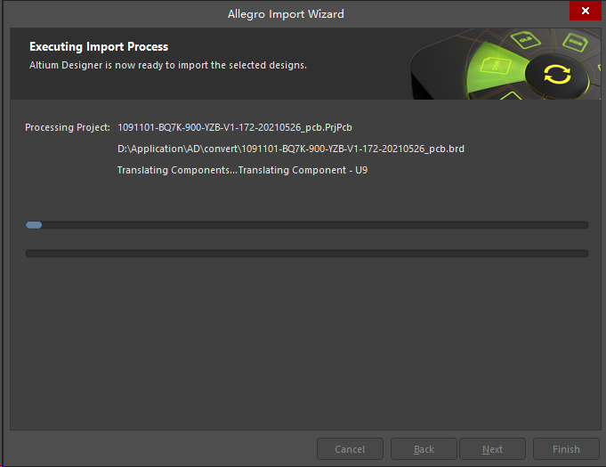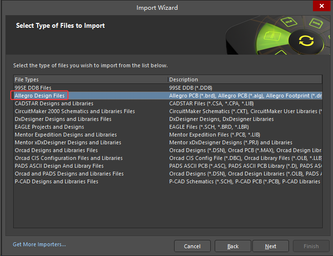 然后按导入DSN的步骤导入.alg文件即可,就是一开始要选择"Allegro Design Files",其他步骤一样。
