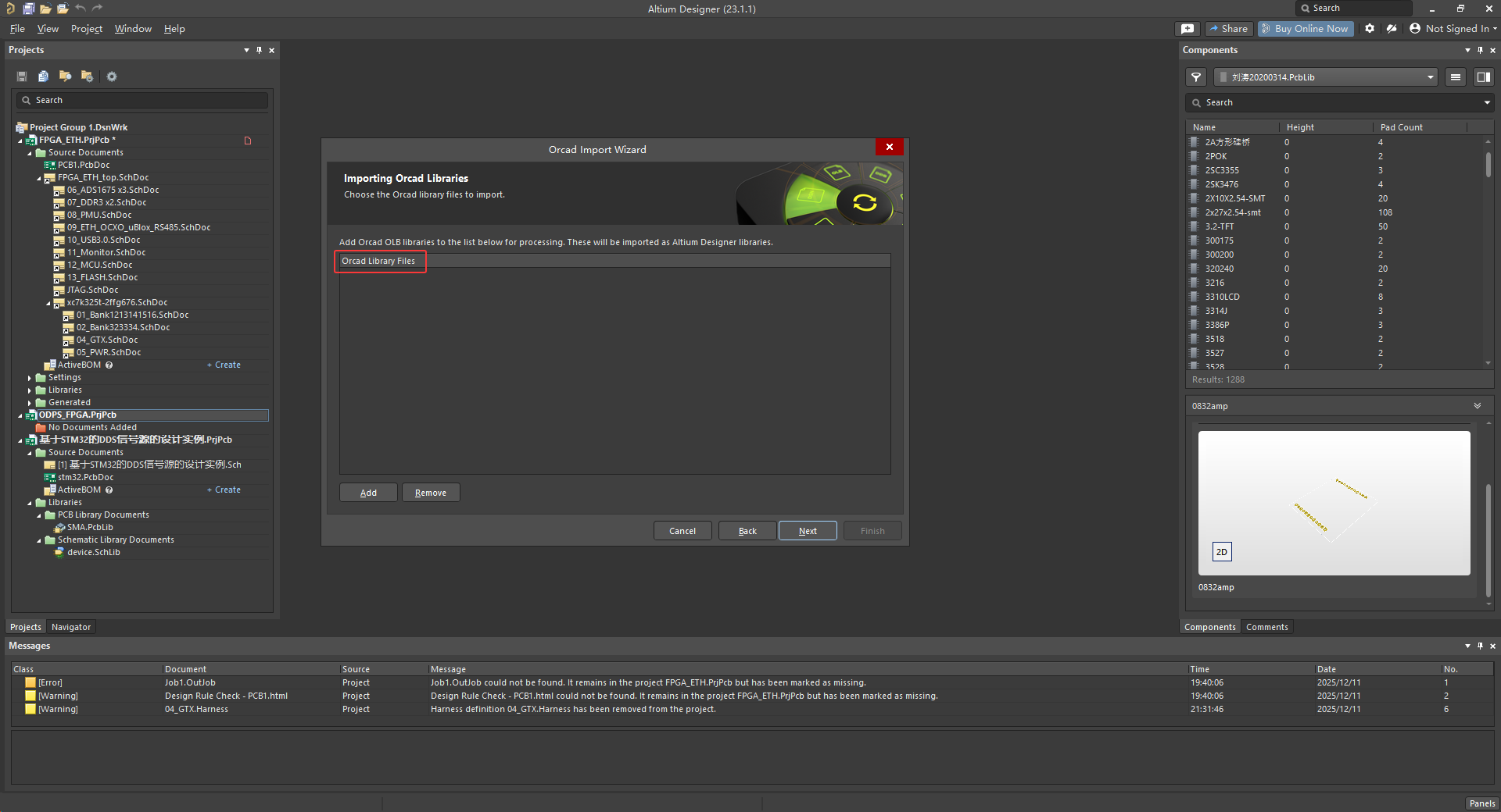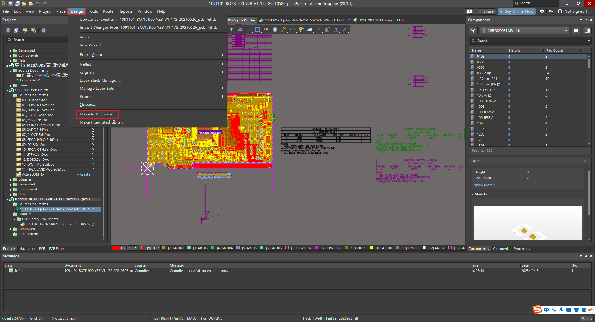 将 Cadence Allegro (.brd) 文件转换为 Altium Designer (AD) 工程后,可以使用 AD 自带的"生成 PCB 库 "功能将板子上的所有元件封装提取出来生成一个独立的 PCB 库文件 (.PcbLib),。