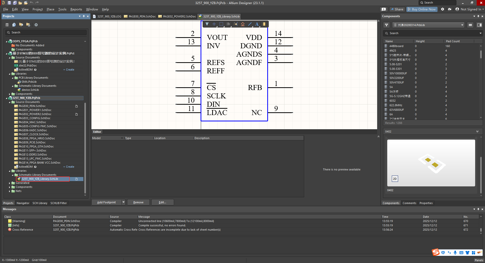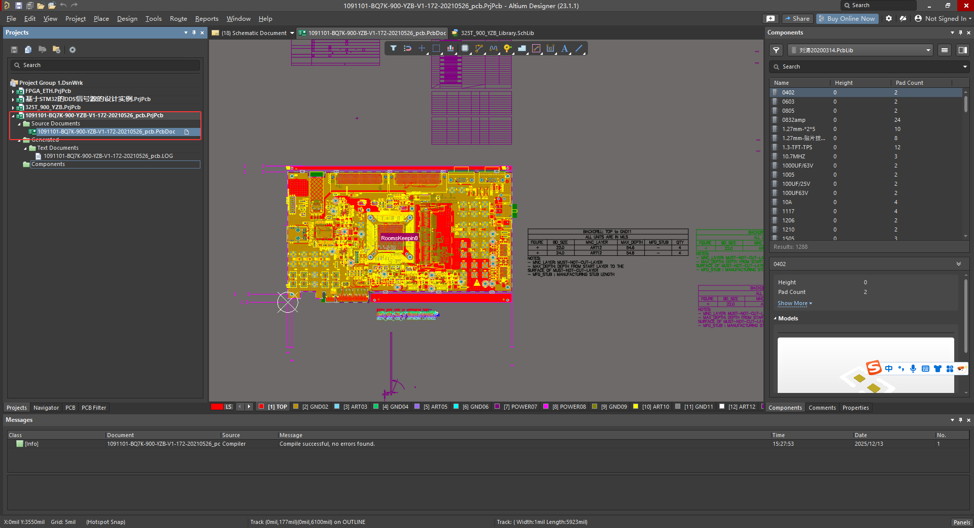 然后等待生成完成,软件会自动扫描当前 PCB 上使用的所有元器件封装,并将它们提取到一个新的 .PcbLib 文件中。可以在左侧的 PCB Library 面板中看到所有提取出来的封装列表。新生成的库文件默认并未保存。点击左侧 Projects 面板中的新库文件(通常命名为 Process PCB Name.PcbLib),然后按ctrl+s即可(不是红色就说明保存成功了)。