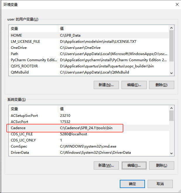 实际上这个方法是可以的。没成功的原因是因为AI误导了我,导致环境cadence的环境变量没有配好,AI让我起一个变量名+cadence的路径放到环境变量中,如下:
