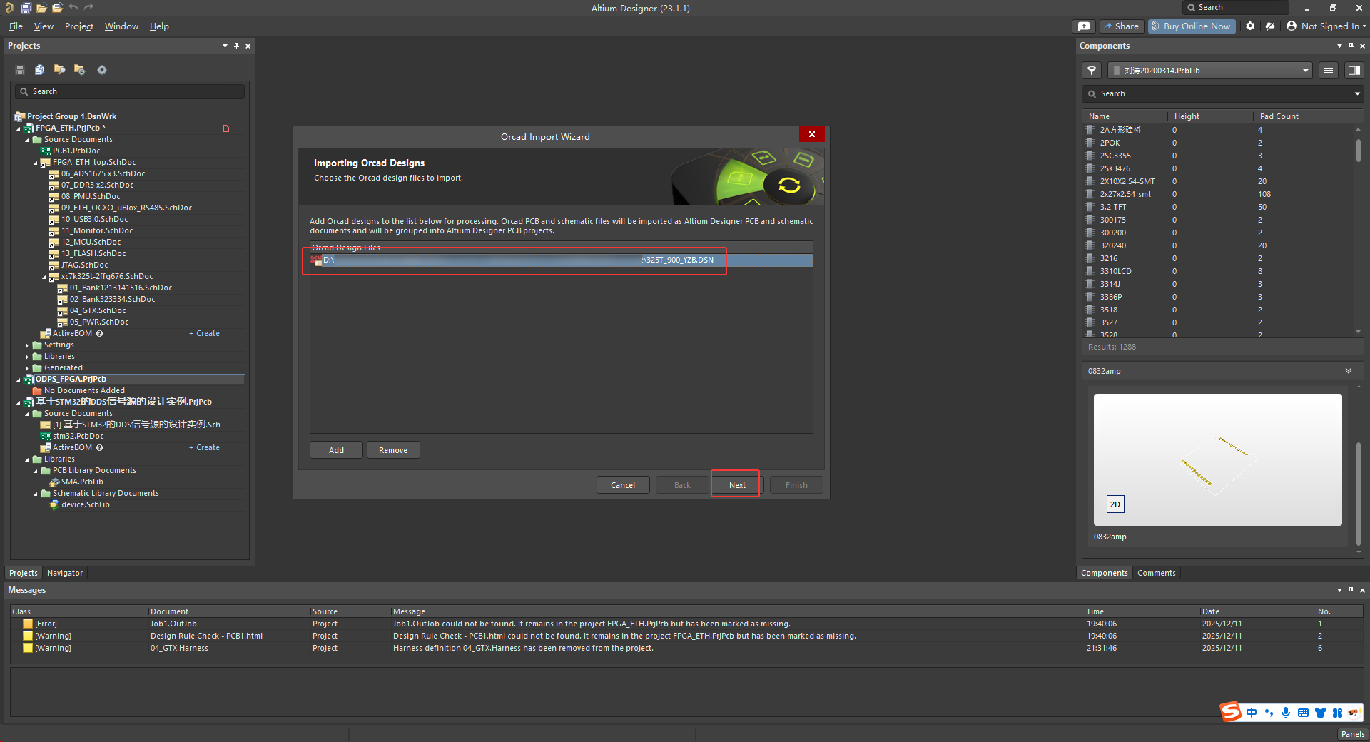 回到 AD 的导入向导,在文件类型里选择 Allegro ASCII (*.alg),直接导入这个生成的文件即可。