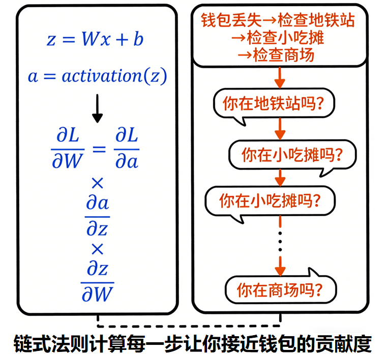👛 二、为什么我总喜欢用"找丢了的钱包"解释反向传播?