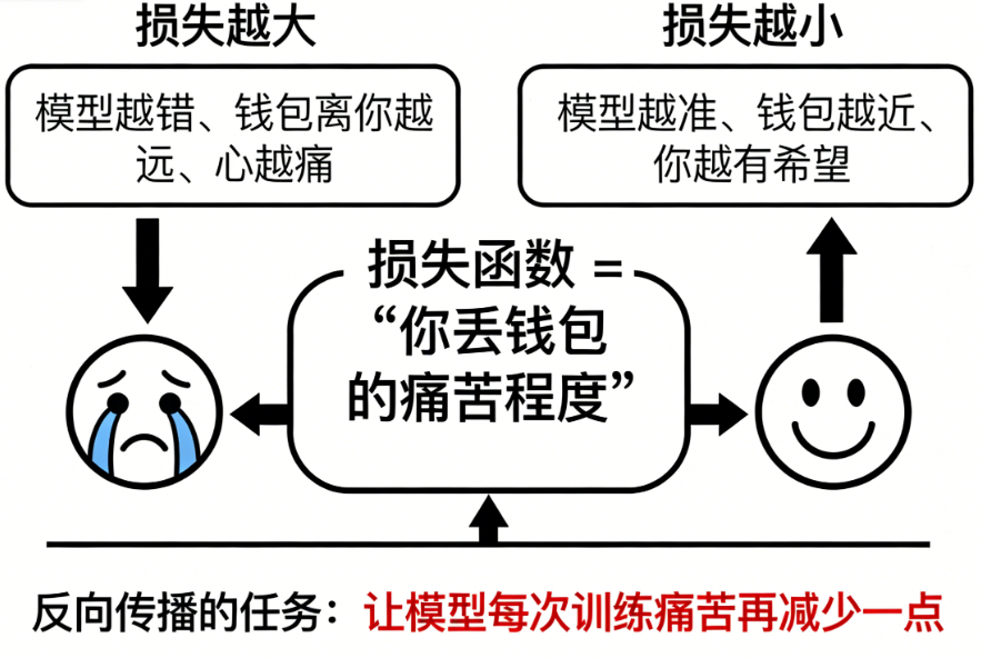 📉 四、损失函数 = "你丢钱包的痛苦程度"