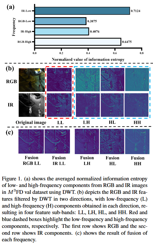 论文首次系统性证明 RGB 与 IR 在不同频率子带的互补性,从统计信息熵切入提出融合策略,为 RGB-IR 跨模态研究提供了理论根据。