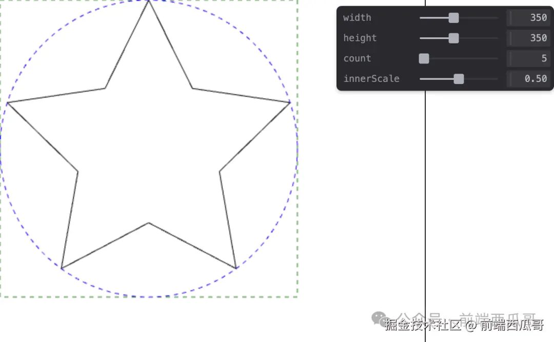 特殊的,innerScale 是 1 的话,就会让 n 角星形变成 2n 多边形。