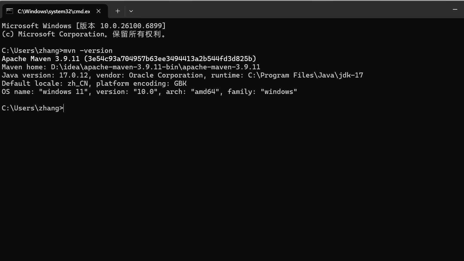 6.验证安装: 打开命令行,输入 mvn -version,检查是否正确输出了Maven版本信息。
