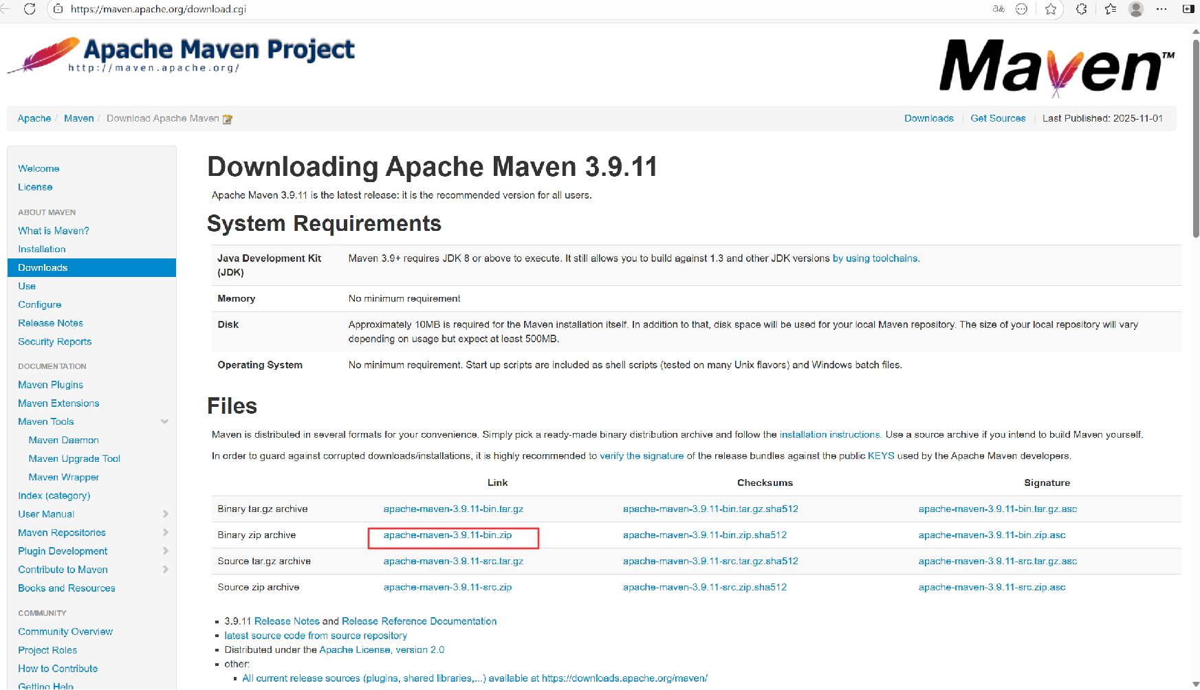 访问Apache Maven官方网站:https://maven.apache.org/download.cgi