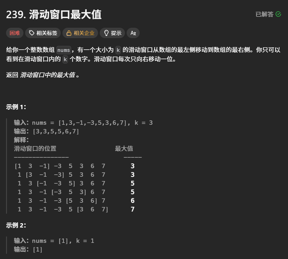 思路是这样,使用一个队列来存储维护滑动窗口的最大值,使得每次都可以在队列的左侧,也即头部获取到最大值。也即当前输入的这个值大于队列尾部的那个值时,此刻,如果需要计算最大值,那么队列尾部那个小一点的值就无需维护,故对其尾部所有小于当前值的值进行pop,然后append这个值。另外,当当前队列左侧的最大值即将滑动走,也即nums[i-k] == q[0]时,那么这个时候要popleft,把队列头部更新。完成这些任务后,对于k-1后面的行动,给maxlist输入一个最大值,形成列表。