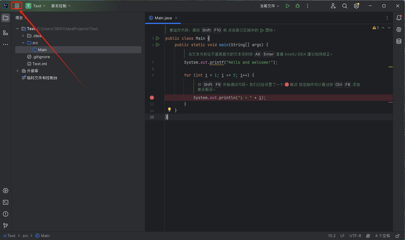 1.打开IDEA,新建一个项目,命名为Text,语言Java,构建系统为IntelliJ,完成后点击创建。