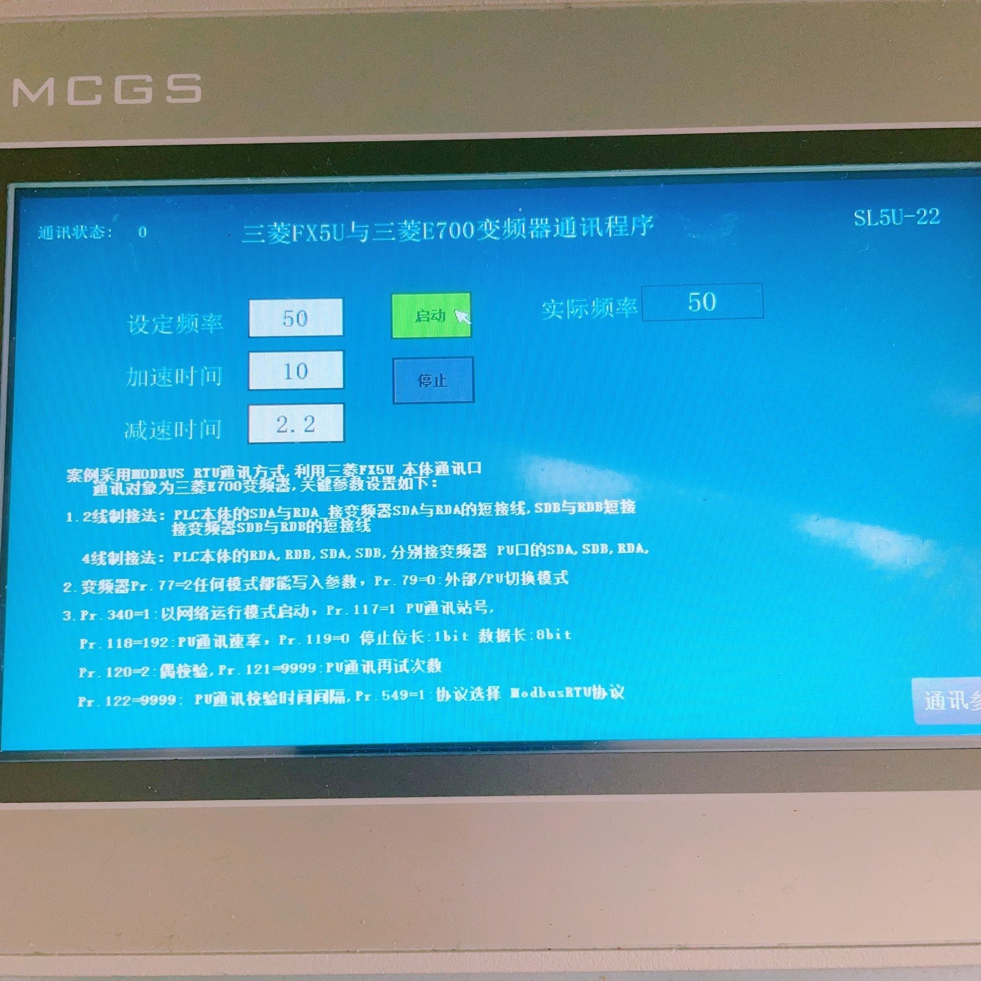 通过上述接线、参数设置以及程序编写,我们成功实现了三菱FX5U与三菱E700变频器的modbus通讯,并结合昆仑通态触摸屏实现了丰富的控制和监控功能。这种组合在工业自动化场景中有广泛应用,希望这篇博文能为大家在类似项目中提供一些参考和帮助。