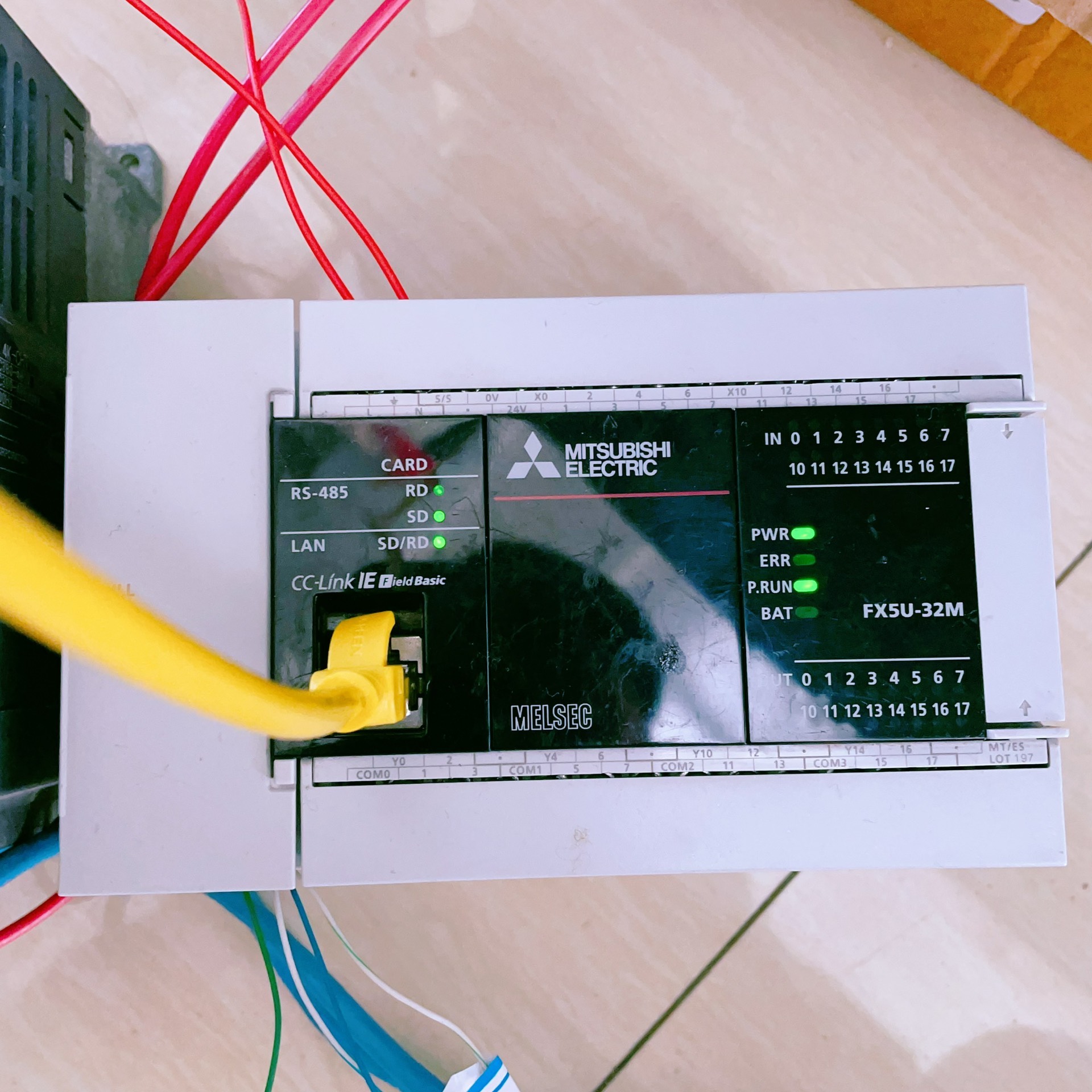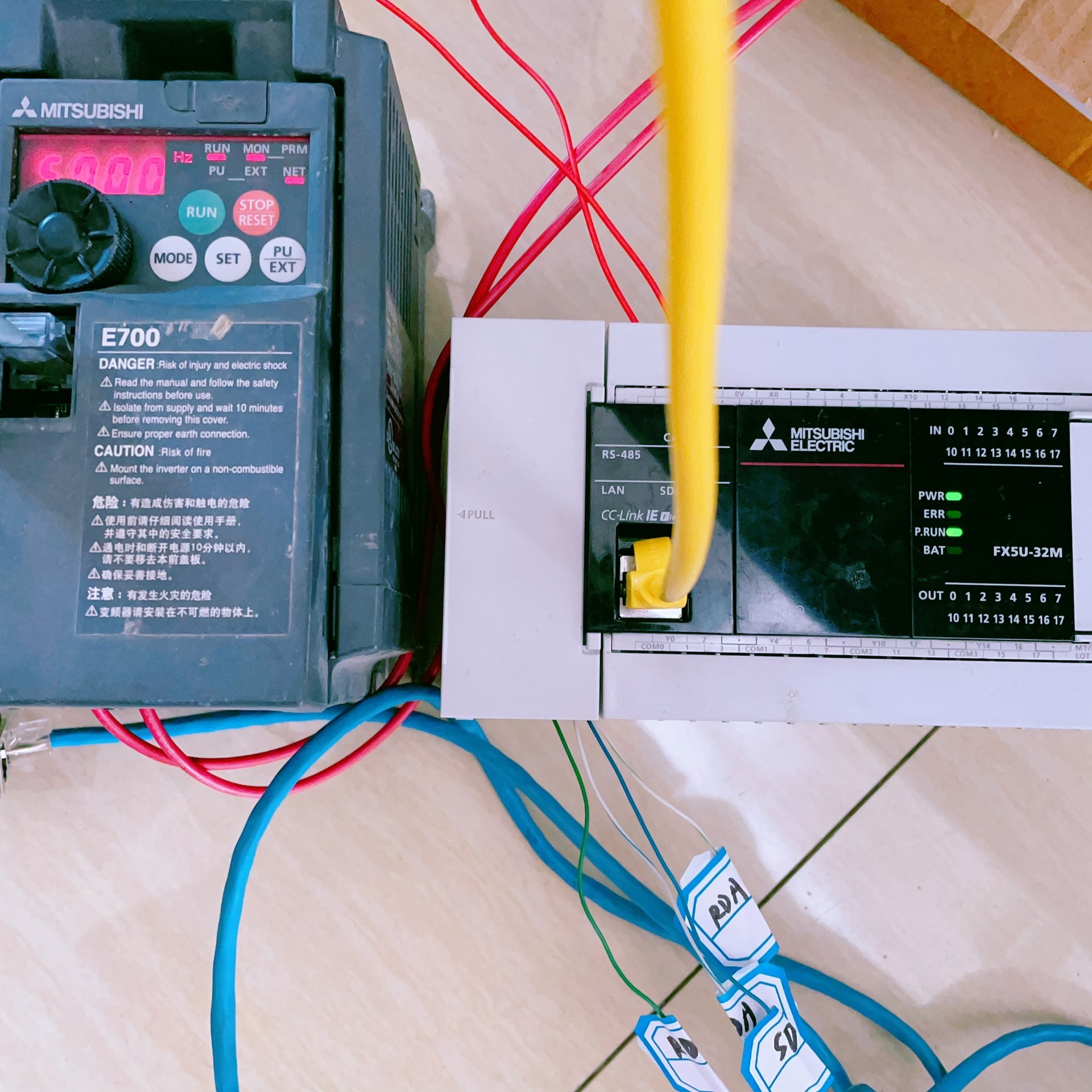 - 三菱FX5U PLC:作为控制核心,承担与变频器和触摸屏通讯以及逻辑控制的重任。