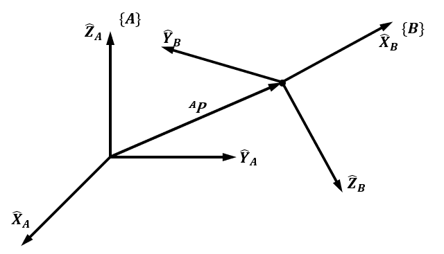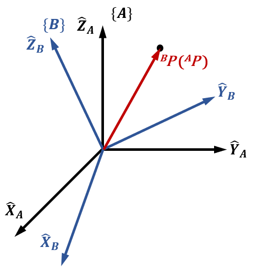 Apx=BX^A⋅BPApy=BY^A⋅BPApz=BZ^A⋅BP \begin{split} ^Ap_x={^B\hat X_A}\cdot{^BP}\\ ^Ap_y={^B\hat Y_A}\cdot{^BP}\\ ^Ap_z={^B\hat Z_A}\cdot{^BP}\\ \end{split} Apx=BX^A⋅BPApy=BY^A⋅BPApz=BZ^A⋅BP