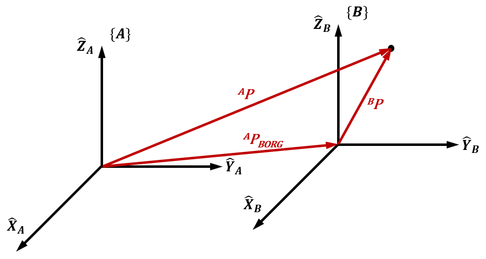 B′P=BARBPAP=B′P+APBORG=BARBP+APBORG \begin{split} ^{B'}P&={^A_BR}{^BP}\\ ^AP&={^{B'}P}+{^AP_{BORG}}\\ &={^A_BR}{^BP}+{^AP_{BORG}} \end{split} B′PAP=BARBP=B′P+APBORG=BARBP+APBORG