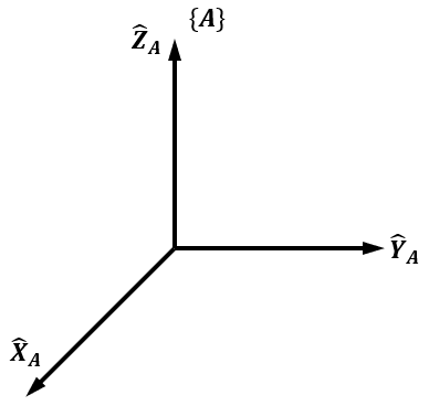 我们采用世界坐标系 (World Frame)作为讨论任何问题的基本参照。一个坐标系{A}\{A\}{A}用三个相互正交的单位矢量X^A,Y^A,Z^A\hat X_A,\hat Y_A,\hat Z_AX^A,Y^A,Z^A来表示。