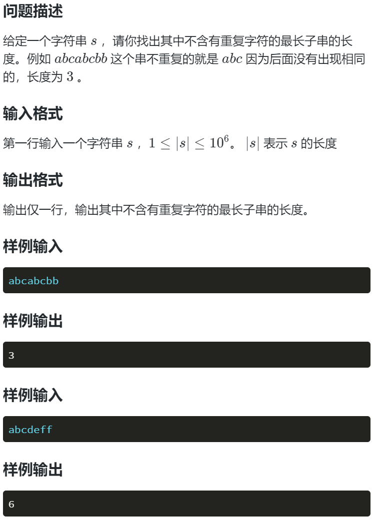 右指针不断向右移动,每次将右指针指向的字符加入当前窗口。如果加入后窗口中没有重复字符,则更新最大长度。