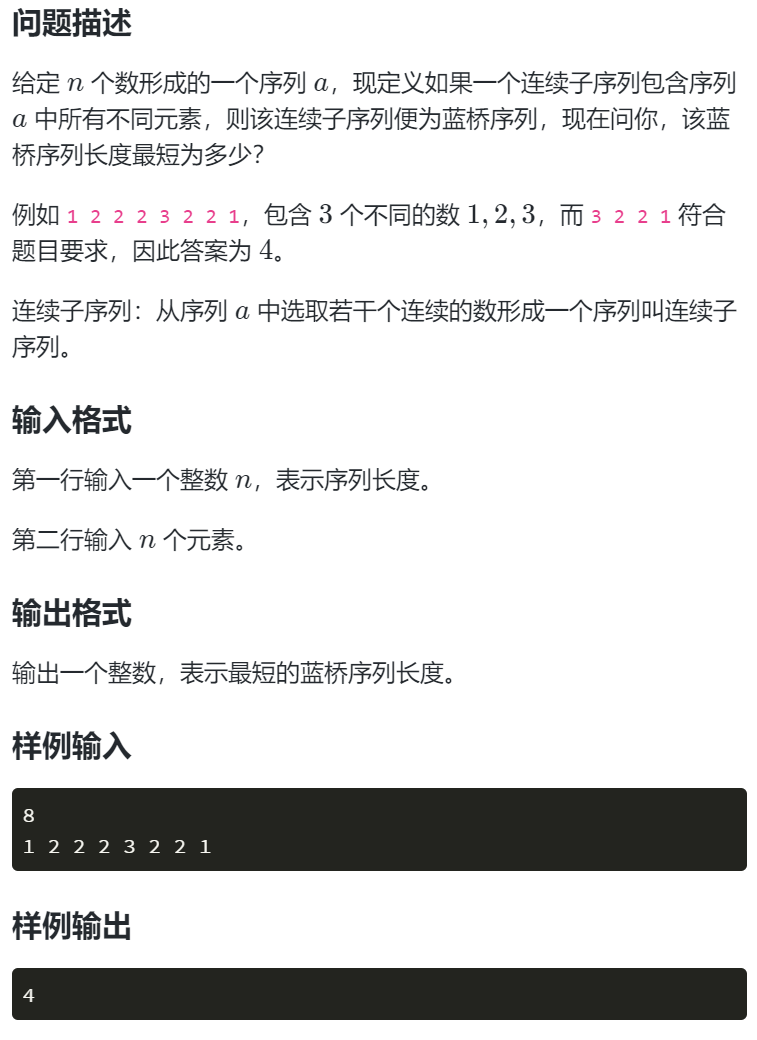 统计所有不同的数字:使用集合获取所有不同的数字,确定目标子数组必须包含这些数字。